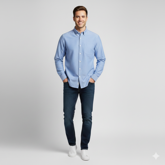 Men’s Premium Sky Blue Oxford Shirt - 100% Breathable Cotton, Modern Slim Fit, Classic Button-Down Collar for Business & Casua